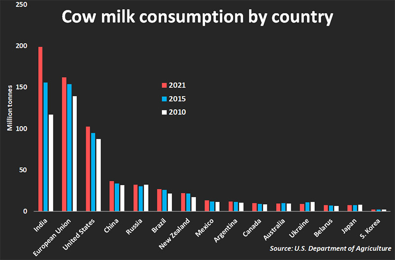 Çinin illik 62 milyard dollar satış həcminə malik süd bazarı böyük perspektiv vəd edir. Lakin, hazırkı istehsal həcmi daxili tələbatın ancaq 70%-ni ödəyir. Üstəlik, adambaşına illik süd istehlakı inkişaf etmiş ölkələrdən çox geri qalır. Euromonitor International bu rəqəmin ABŞ-da 50 litr, Çində isə cəmi 6,8 litr təşkil etdiyini bildirir. Nəticədə, təbii südün litri 2 dollaradır ki, bu da Böyük Britaniya və ABŞ-la müqayisədə 2 dəfə bahadır.