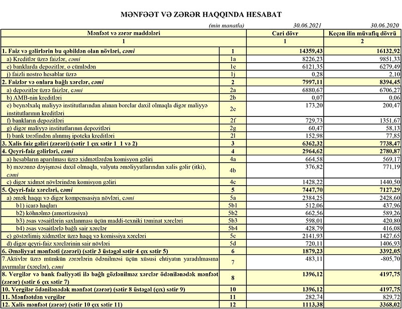 Marja Bankın maliyyə hesabatına istinadən xəbər verir ki, 2020-ci ilin yanvar-iyun dövründə 16 milyon 132 min manat təşkil etmiş faiz gəlirləri 2021-ci ilin eyni dövründə 14 milyon 359 min manata düşüb (1 milyon 773 min manat və ya 11% azalıb). Qeyri-faiz gəlirləri isə 2 milyon 780 min manatdan 2 milyon 964 min manata yüksəlib (184 min manat və ya 6,6% artıb).