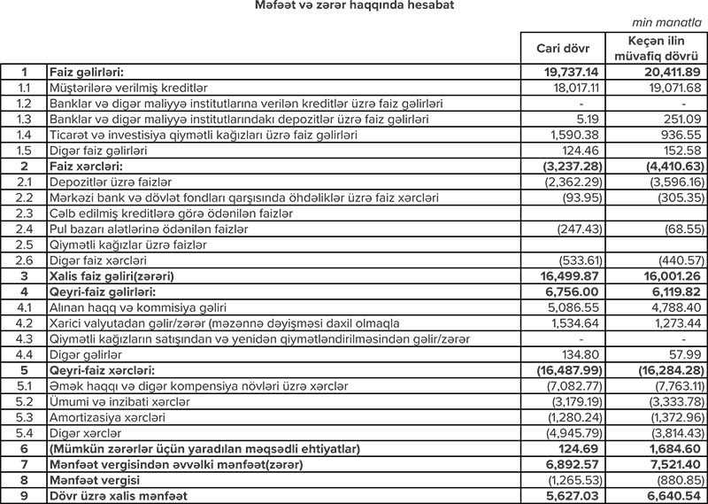 Eyni zamanda Bankın kredit portfelində də artım müşahidə edilib. Belə ki, keçən ilin müvafiq dövrü ilə müqayisədə biznes kreditləri 10% artaraq 72 milyon manat, istehlak kreditləri isə 9% artaraq 124 milyon manat təşkil edib. Kredit portfelində müşahidə olunan artım Bankın həm biznes sahiblərinə, həm də fiziki şəxslərə dəstəyinin göstəricisidir.
