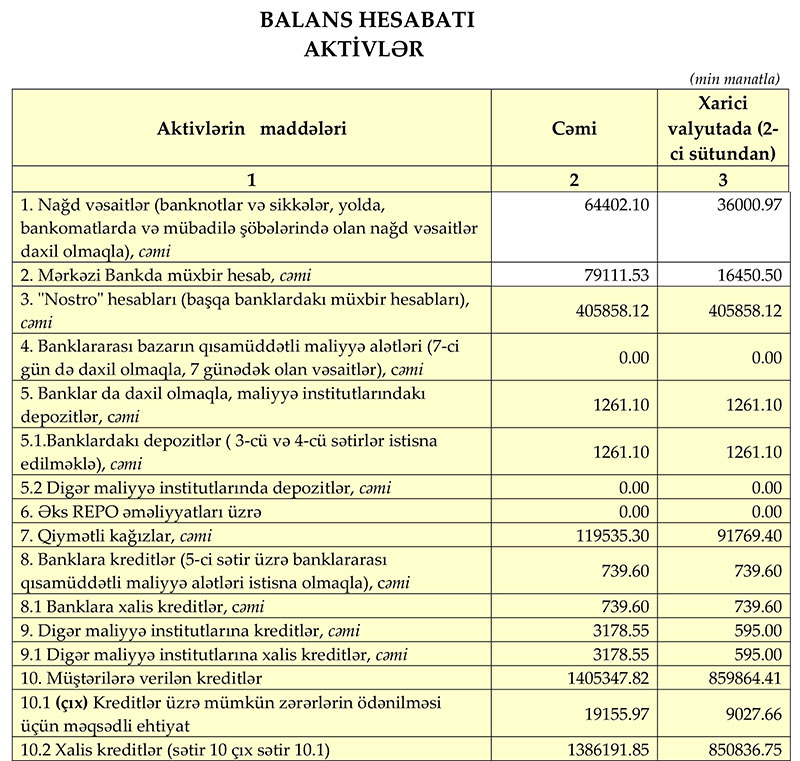 AKTİVLƏRİ 2 MİLYARD MANATDAN ÇOXDUR