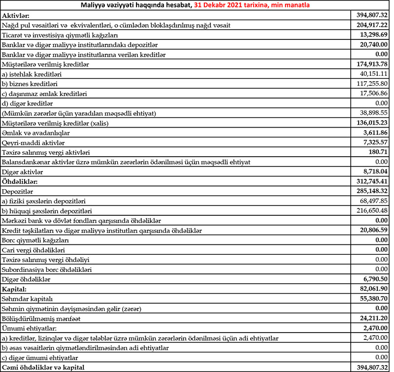 Marja xəbər verir ki, “Yapı Kredi Bank Azərbaycan”ın cəmi aktivləri 2020-ci illə müqayisədə 2021-ci ildə 13,4% və ya 46 milyon 523 min manat artaraq 394 milyon 807 min manata yüksəlib. Bank 2020-ci ilin sonunda 348 milyon 285 min manat cəmi aktivlərə malik idi.