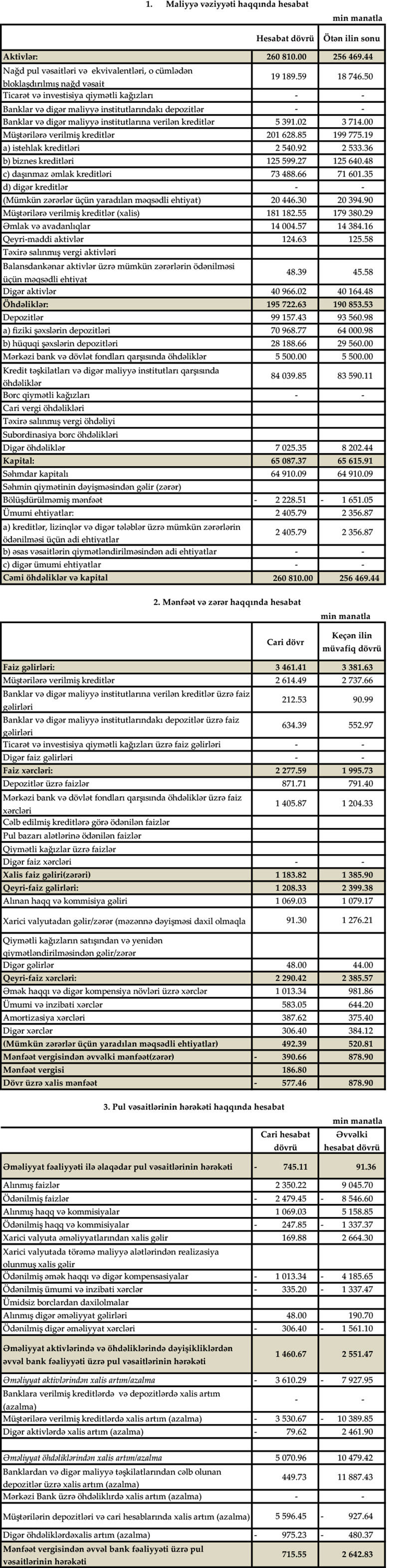 "GünayBank" böyüyüb, müştərilərə verilən kreditlər artıb - MALİYYƏ VƏZİYYƏTİ