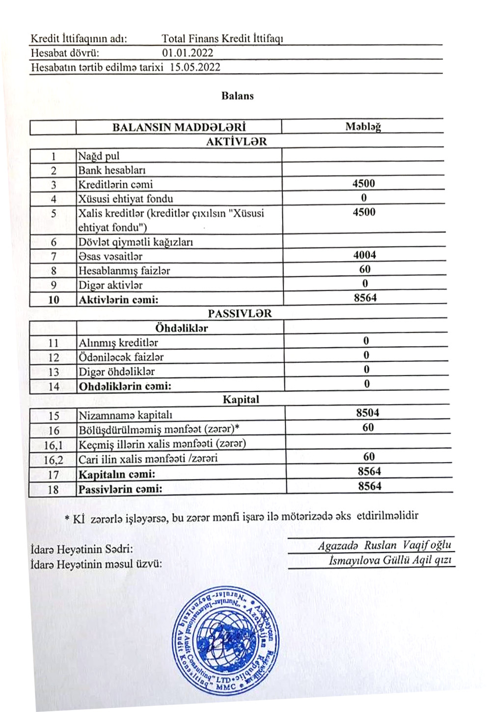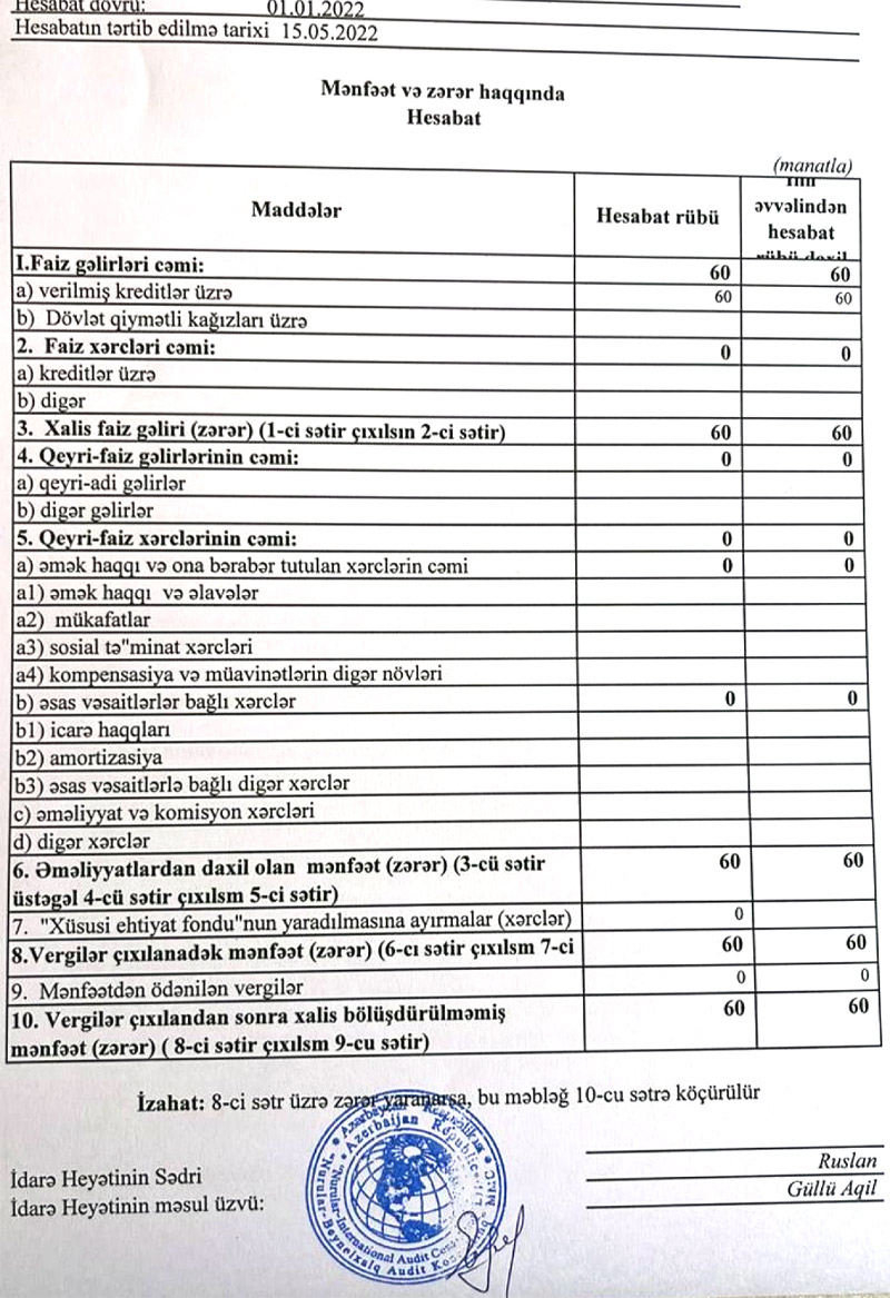 Total Finans Kredit İttifaqı 2021-ci il üzrə maliyyə göstəricilərini açıqladı