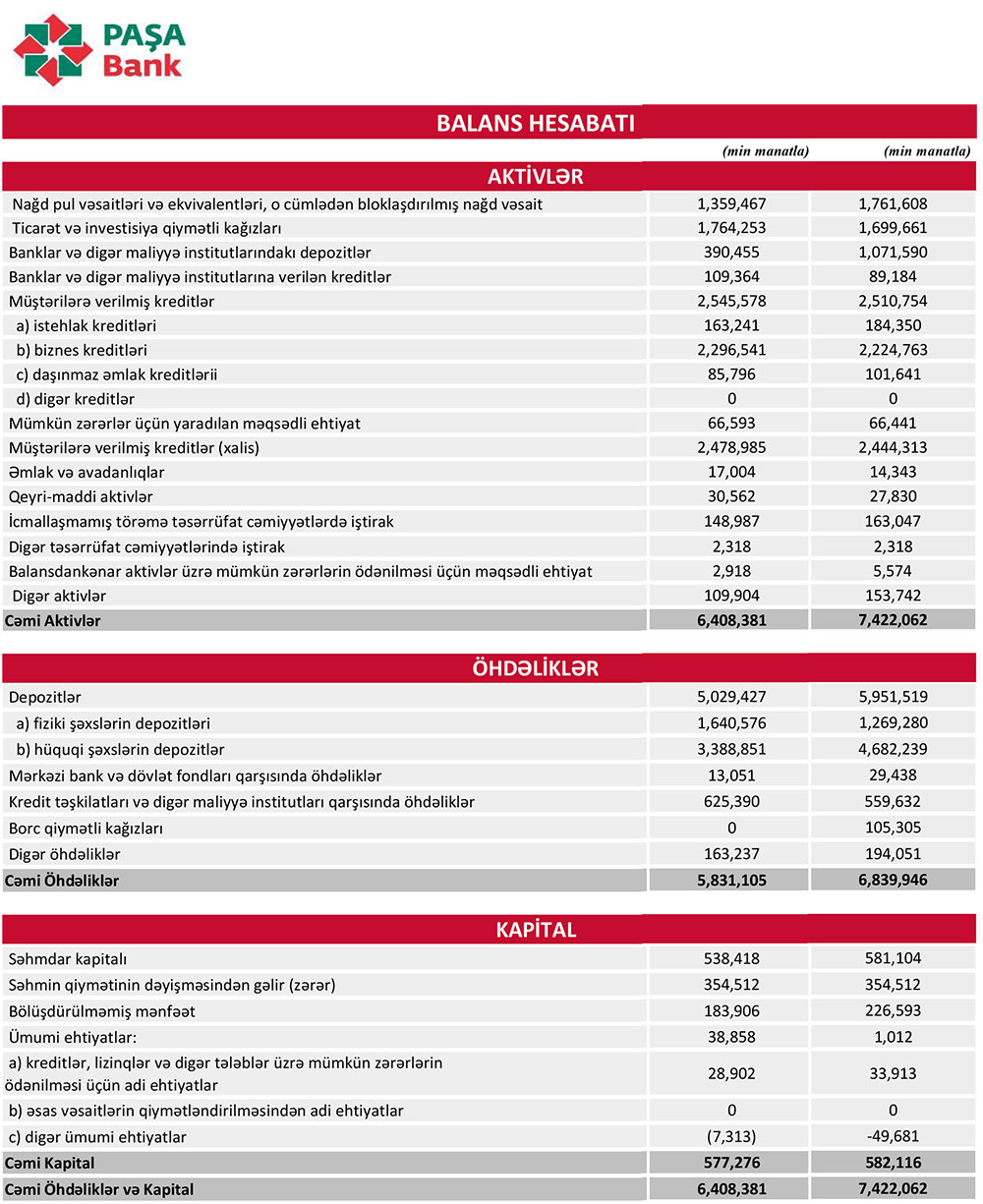 “PAŞA Bank”ın xalis mənfəəti 28% artıbMüştərilərin xəbərləri