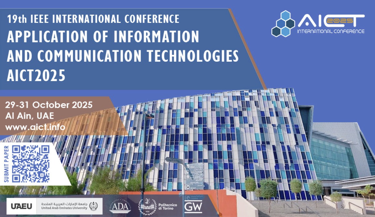 Birləşmiş Ərəb Əmirliklərinin Əl-Əyn şəhərində informasiya və kommunikasiya texnologiyalarının tətbiqi ilə bağlı keçirilən 19-cu IEEE Beynəlxalq “Application of Information and Communication Technologies” (“AICT 2025”) konfransında azərbaycanlı məktəblinin də əməyinin olduğu təqdiqat təqdim edilib.