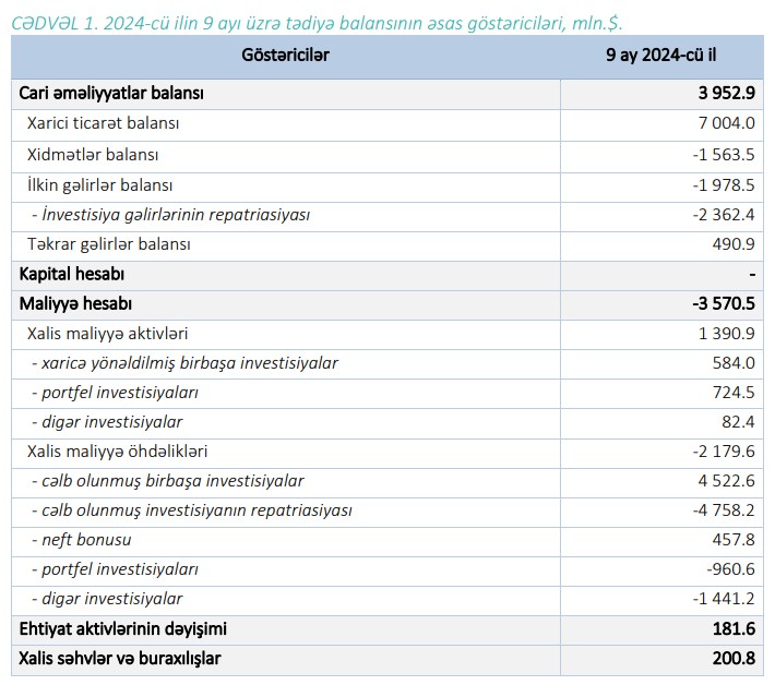 Marja.az xəbər verir ki, bu, Azərbaycanın 2025-ci ilin 9 ayı üzrə Tədiyə balansında bildrilir.