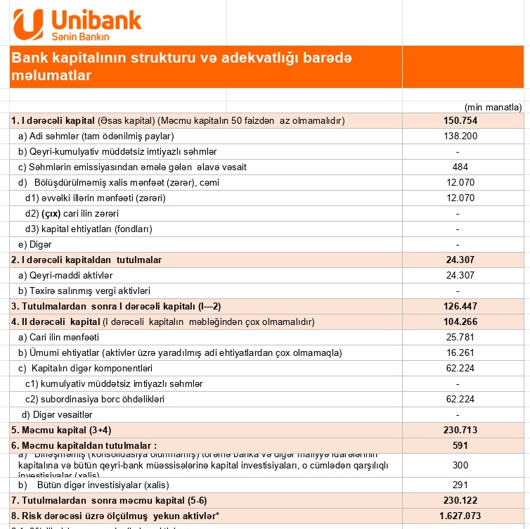 Unibank Unibank ASC Unibank 2025 maliyyə nəticələri Unibank xalis mənfəət bank sektoru Azərbaycan Azərbaycan bankları Unibank gəlirləri Unibank faiz gəlirləri Unibank qeyri-faiz gəlirləri bank əməliyyat gəlirləri Unibank xərcləri bank faiz xərcləri qeyri-faiz xərcləri bank risk ehtiyatları mümkün zərərlər üçün ehtiyatlar Unibank aktivləri bank aktivlərinin artımı Unibank kredit portfeli istehlak kreditləri biznes kreditləri daşınmaz əmlak kreditləri bank kredit artımı Unibank depozit portfeli fiziki şəxslərin depozitləri hüquqi şəxslərin depozitləri əmanət bazarı bank depozit artımı Unibank kapitalı bank məcmu kapitalı kapitalın güclənməsi bank maliyyə dayanıqlığı bank maliyyə təhlili 2025 bank hesabatı Azərbaycan maliyyə sektoru pərakəndə bankçılıq biznes bankçılığı bank maliyyə göstəriciləri