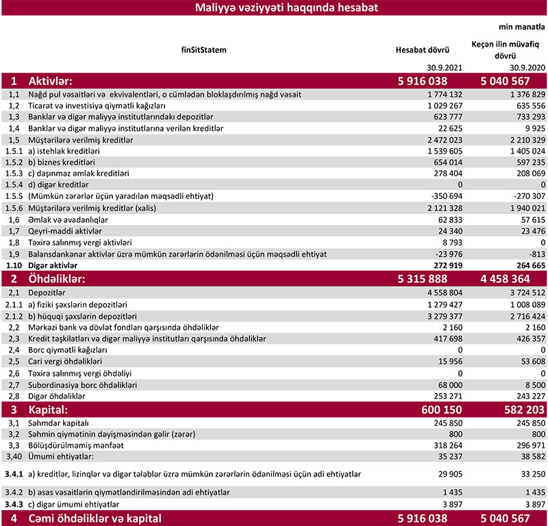Bankın cəmi aktivləri isə 875 milyon 471 min manat və ya 17,4% artaraq 5 milyard 916 milyon 38 min manata yüksəlib.