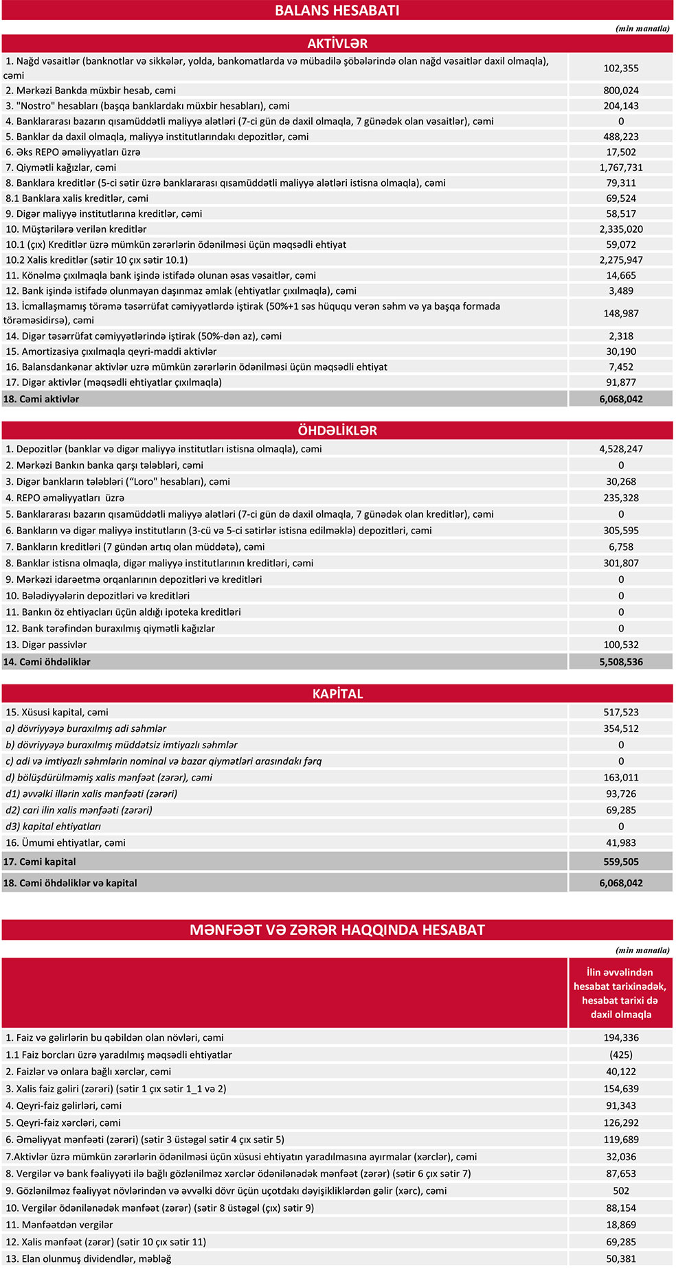 Marja xəbər verir ki, bu, Bankın açıqladığı maliyyə hesabatından məlum olur.