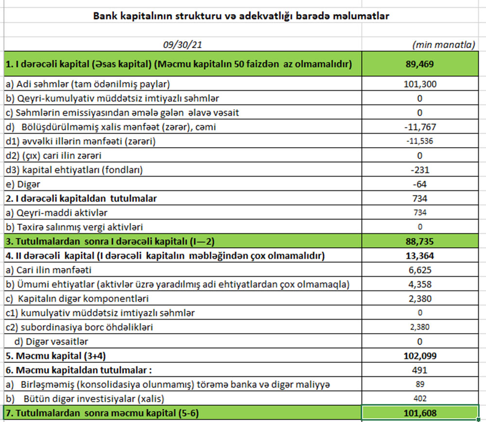 30 Sentyabr 2021-ci il tarixində “Rabitə Bank” 102 milyon 99 min manat məcmu kapitala malik olub.