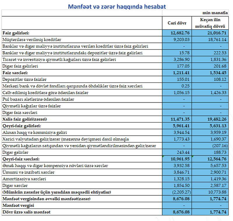 Bankdan Marja-ya daxil olmuş press-relizdə bildirilir ki, keçən ilin müvafiq dövründə bu göstərici 1 milyon 775 min manat idi ki, bu da müqayisədə xalis mənfəətin 6 milyon 901 min manat və ya 5 dəfəyə qədər artımı deməkdir.