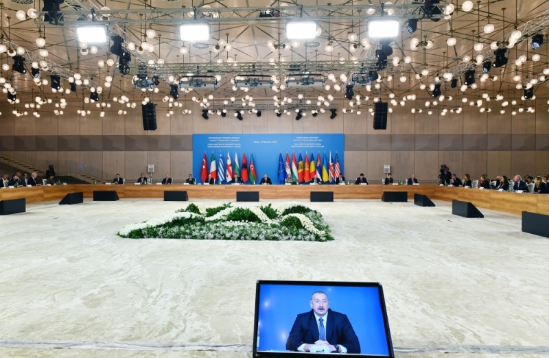Qazın paylanması ilə əlaqədar yaxşı uğurlarımız var. Biz yaşıl enerji ilə bağlı saziş imzalamışıq. Biz, həmçinin təbii qaz və bərpaolunan enerji imkanları arasında səmərəliliyin artırılmasına əsaslanan qarşılıqlı əlaqə yaratmalı və bunu vahid paket çərçivəsində etməliyik. Bizim güclü siyasi iradəmiz və əlbəttə ki, fəaliyyətimizin uğurlu tarixçəsi var. Bizim müxtəlif formatlarda və müxtəlif ölkələrlə birgə həyata keçirdiyimiz bütün layihələr – istər Bakı-Tbilisi-Ceyhan neft boru kəməri, istər Bakı-Tbilisi-Ərzurum qaz boru kəməri, istərsə də Cənub Qaz Dəhlizi – hamısı uğurlu olmuşdur.