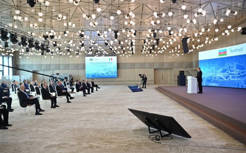 Daha sonra Azərbaycan Prezidenti İlham Əliyev və İtaliya Respublikasının şirkətlər və “Made in Italy” naziri Adolfo Urso stansiyanın təməlini qoydular.